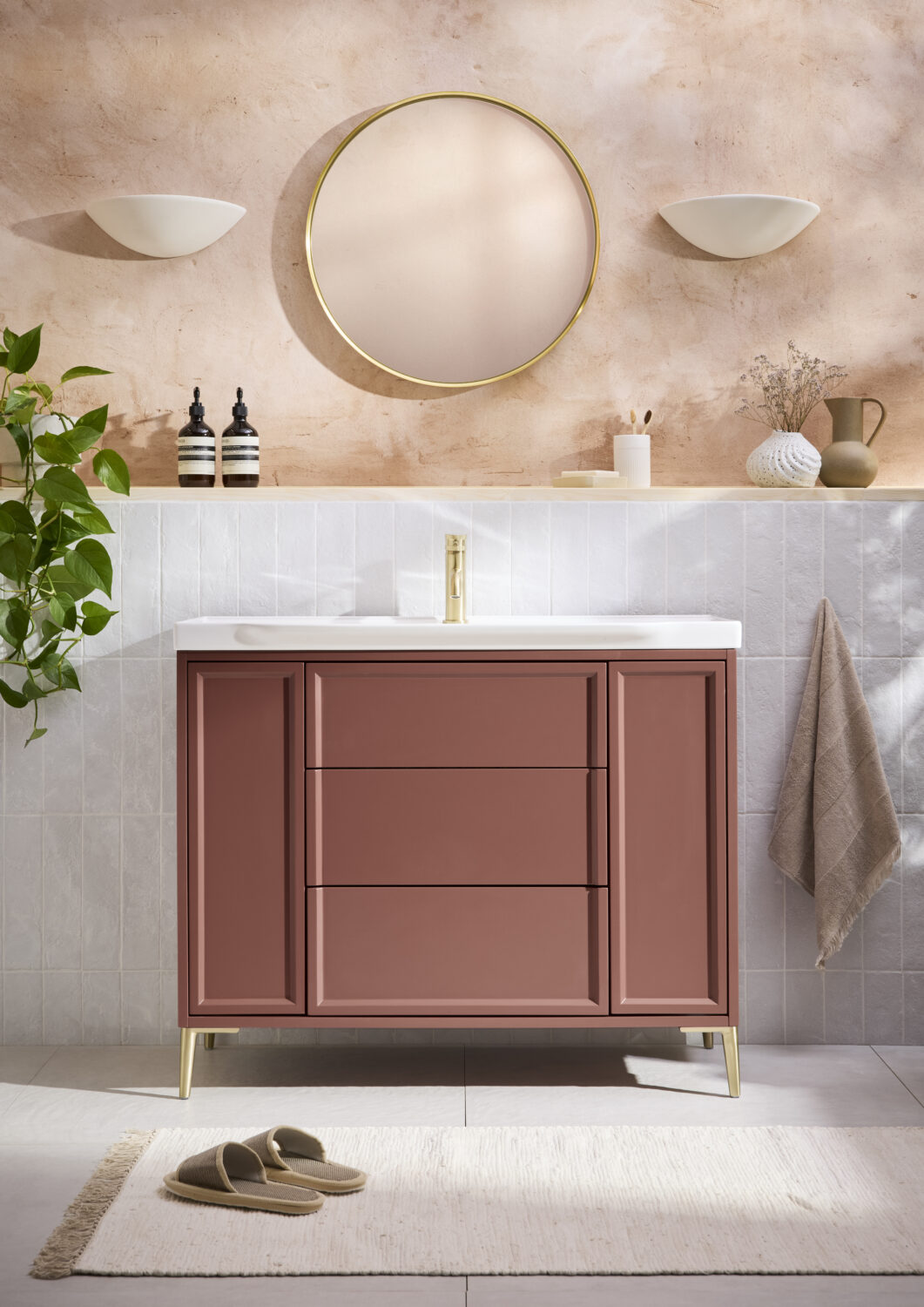 Bota features a sleek push-to-open mechanism with soft-close functionality, delivering effortless, handle-free elegance. The slender, sculptural leg set comes in four of our signature finishes, allowing you to personalise your piece with timeless elegance. Complete the look with a premium-quality basin, available in three perfectly proportioned sizes for a flawless finishing touch.
