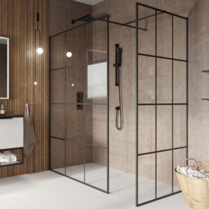Two wetroom panels can simply combined to create a minimalist walk in design. using a joining piece (GRID-JOIN).
